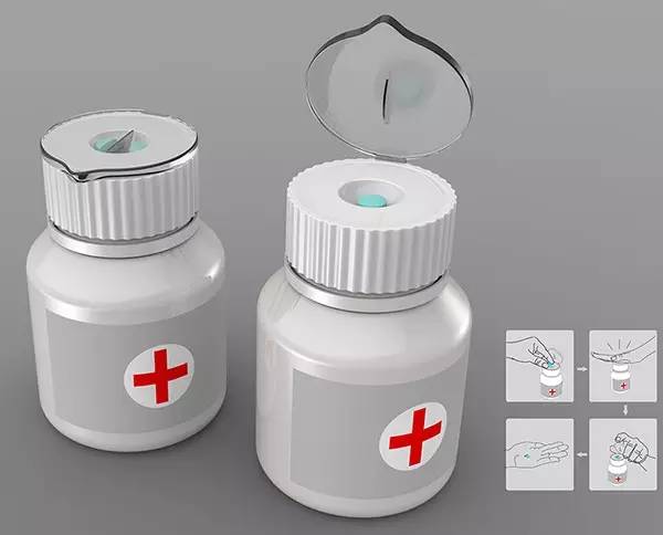 我們在服藥時,偶爾需要切割藥丸,來使他們更容吞咽或達到醫(yī)囑的正確劑量。倘若身邊沒有刀就較為棘手。一款內置刀片的藥瓶,就能解決大問題。只需在瓶蓋上稍加修改,貼心又便利的設計就此誕生。