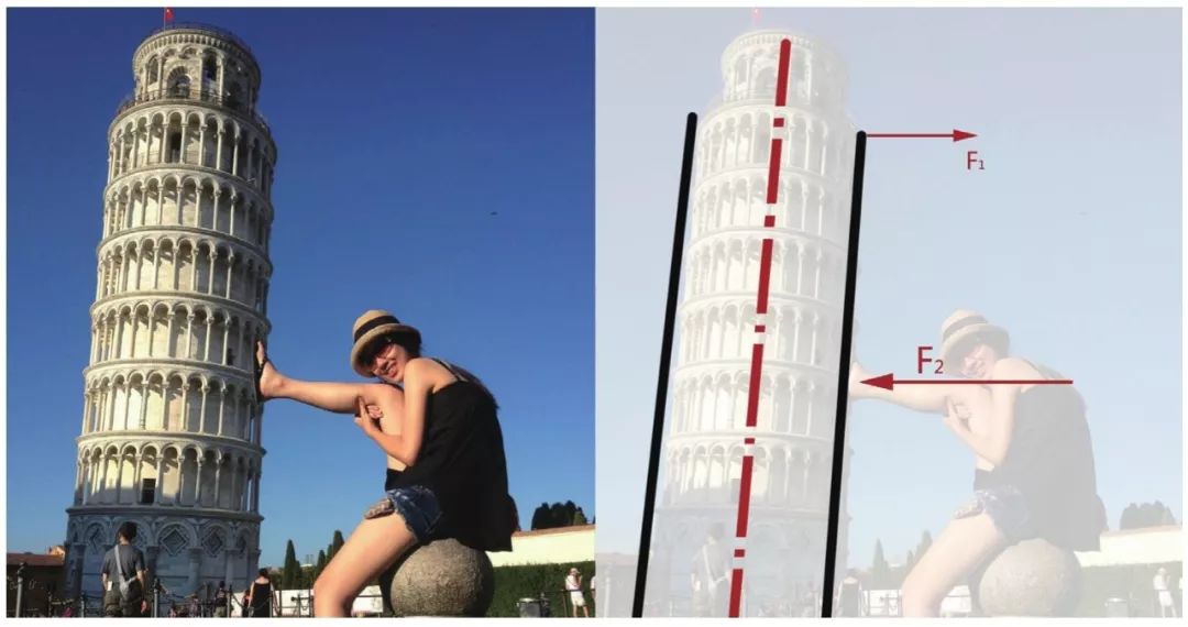 著名的比薩斜塔,之所以出名,是因為他看上去是傾斜的,我們很小的時候就形成了視覺對于重力、重心、傾倒等物體運動趨勢的判斷能力。