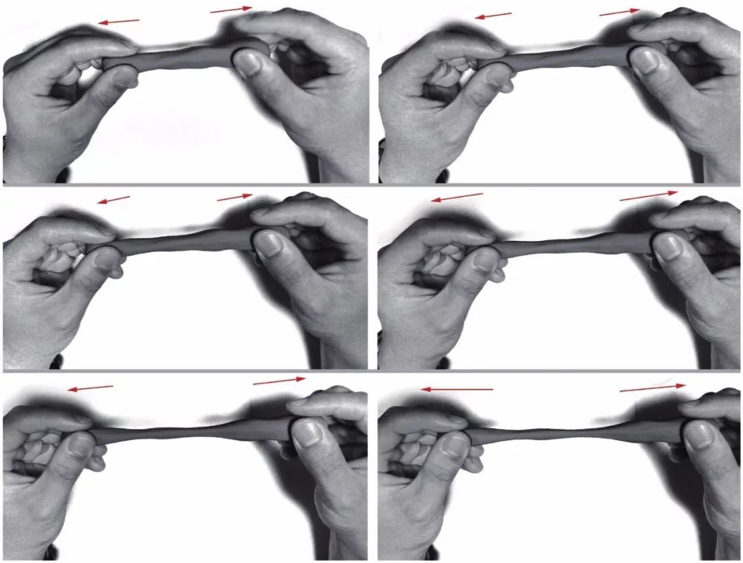 如果我拿著一款橡皮泥,捏住它的兩端,然后慢慢拉扯它,他會被越拉越長,中間的部分就會越來越細,而我手捏住的地方則沒有太大的變化。這是一般柔軟材質(zhì)受到的兩個相反方向拉扯力后自然呈現(xiàn)出的樣子。